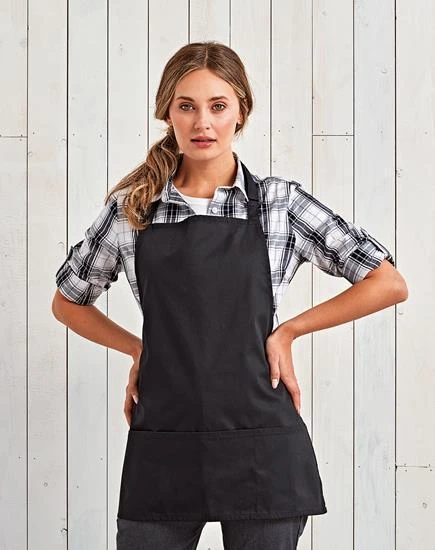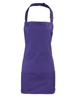This 'Colours Collection' 2 in 1 apron allows the wearer choice and flexibility in how its worn. Initially a short bib apron, it doubles over and the neck ties fasten away to form a waist apron. Both styles have three functional pockets for carrying the tools of the trade.