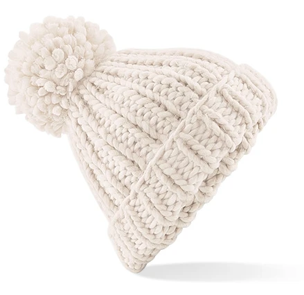 TearAway label for ease of rebranding, statement single layer hand-knit, sumptuous chunky yarn, oversized luxury pom pom, cuffed design for optimal decoration