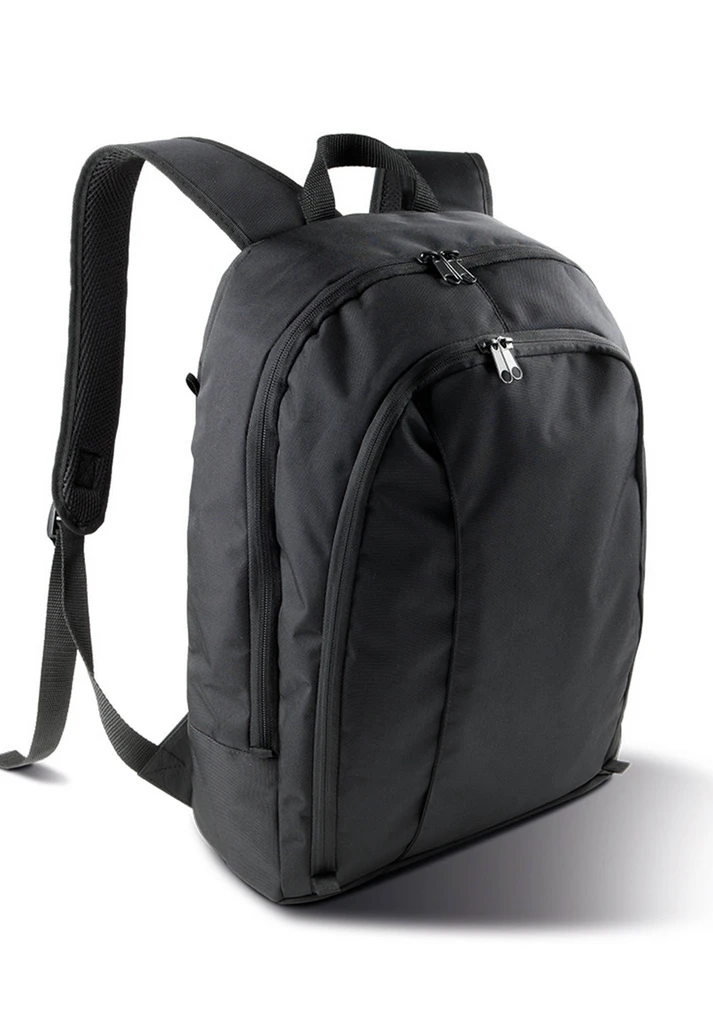 15" laptop backpack in 900D PU backing, 3 compartments, padded lap-top compartment with zip suitable for laptop up to 15", zipped front pocket, key holder, adjustable shoulder straps. SBS zips.