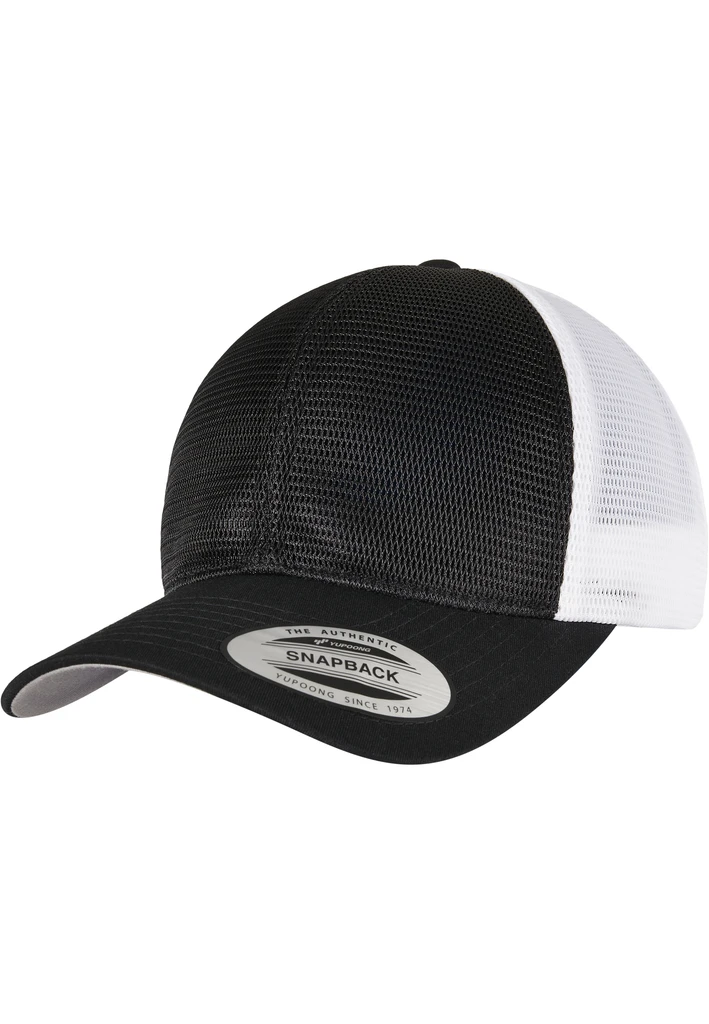 A modern cap that features a classy two-toned look, based on the trucker cap style. Front and visor differ in color from the back. Coming handy for hot days is the all-around breathable mesh material. For offering finest wearing comfort the one size fits comes with a snapback closure on the back of the head, which is also color-matching. The cap is made from cotton and polyester and its design is rounded off by a pre-bent, eight-fold stitched visor.