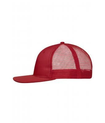 Material: Outer fabric: 65% polyester, 35% cotton; Mesh: 100% polyester; 8 decorative stitching lines on the peak, 2 embroidered ventilation holes on the front panels, lined satin sweatband, 'click & snap' fastener for size adjustment
