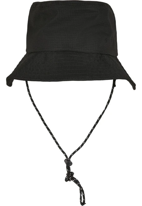 This bucket hat is a great and casual everyday accessory. This version offers on top a practical safety cord with a stopper, which will not only please naturalist. Naturally, the bucket hat likes to be creased and features a classic slanted brim with parallel decorative seams. It is made of sturdy polyester fabric.