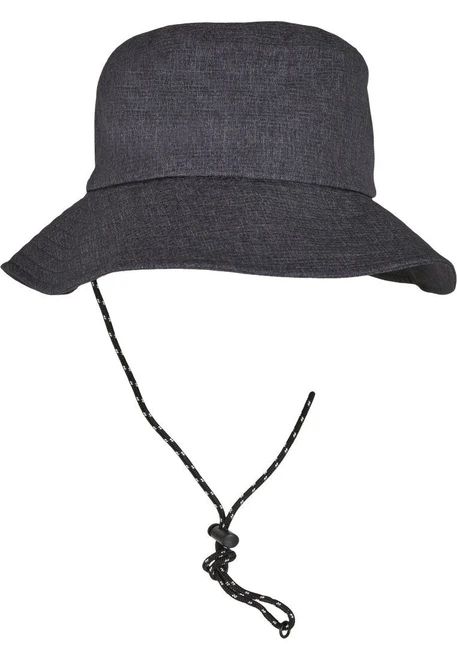 This bucket hat is a great and casual everyday accessory. This version offers on top a practical safety cord with a stopper, which will not only please naturalist. Naturally, the bucket hat likes to be creased and features a classic slanted brim with parallel decorative seams. It is made of sturdy polyester fabric.