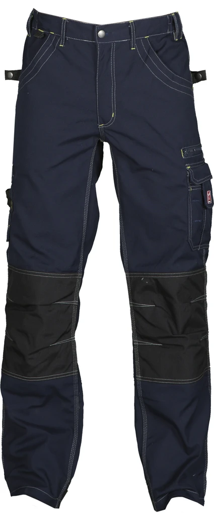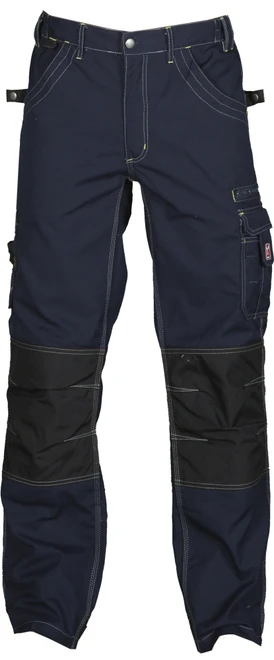 Men’s all-season trousers with reinforced Cordura kneepads, side elastic and waist belt loops. Zip fastening with metal button, two front pockets in the same material as the trousers, two multi-function side pockets with detachable, foldaway badge holder, one zip pocket, two open front pockets, hammer holder. Contrasting inserts and stitching, triple seams on the inner and outer leg