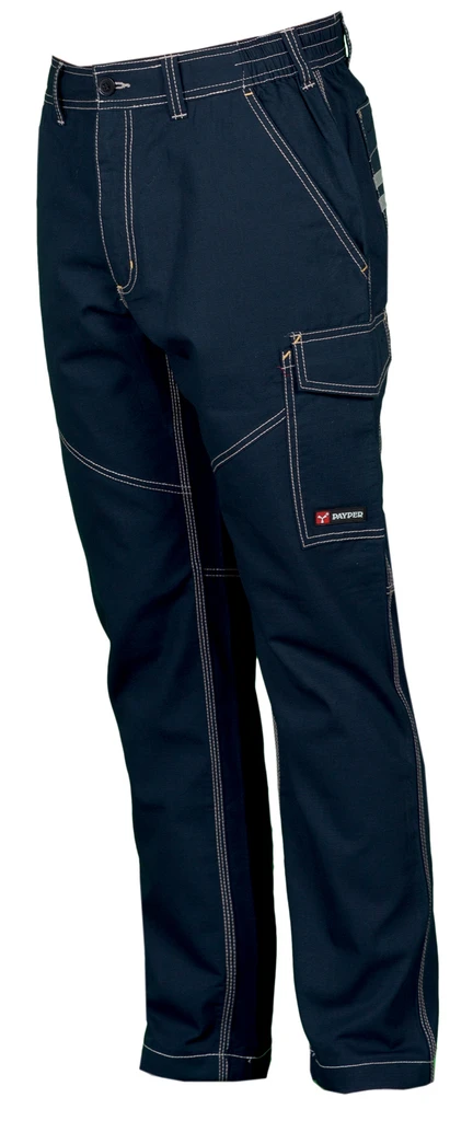 Summer unisex trousers, side elastic and waist belt loops, zip fastening with plastic button, two classic front pockets, one left side pocket with LOCK SYSTEM, one right side tape measure pocket, two back pockets, one with flap and one open with double Velcro flap. Contrasting stitching and inserts, reflective stripes on the back pocket, triple stitched seams