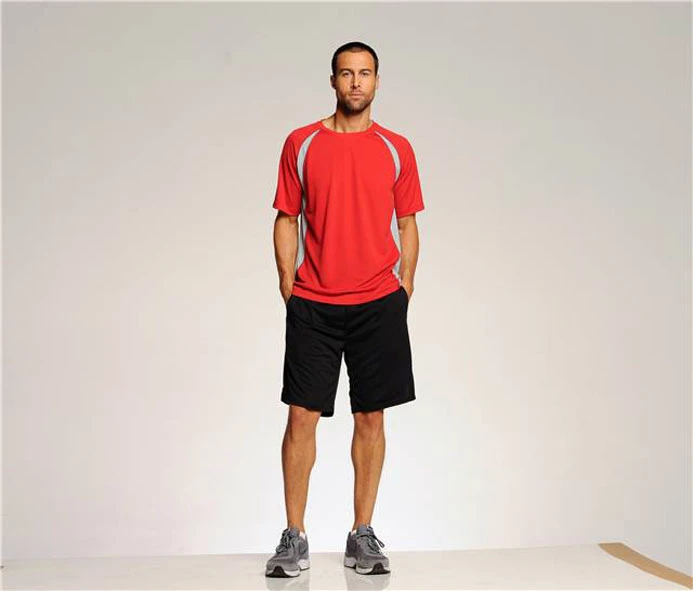 100 % polyester (jacquard material) • antibacterial functional pair of shorts • elastic waistband with adjustable drawcord • two welt pockets • contrast colour on waist yoke and side panel • small side vents • logo print on right leg.