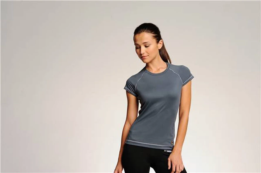 92 % polyester 8 % spandex • velvet-like • antibacterial functional material for lasting dimensional stability and a great fit due to StretchFlex™ technology • raglan sleeves with contrast seams • contrast seams to inserts on side and bottom hem • rubberized logo on left front • cool-Fit print on right front • small side vents.