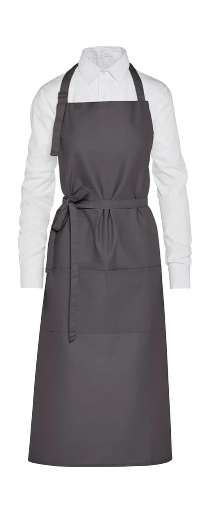 Looking for a smart and more SUSTAINABLE bib apron ? You found it! Available in 6 classic colours and featuring a practical divided patch pocket, it will fit in any professional environment. It is made of 65% RECYCLED pre-consumer polyester and 35% RECYCLED post-consumer cotton (GRS certified), a truly conscious choice. Add a logo, graphic or message and make it yours.