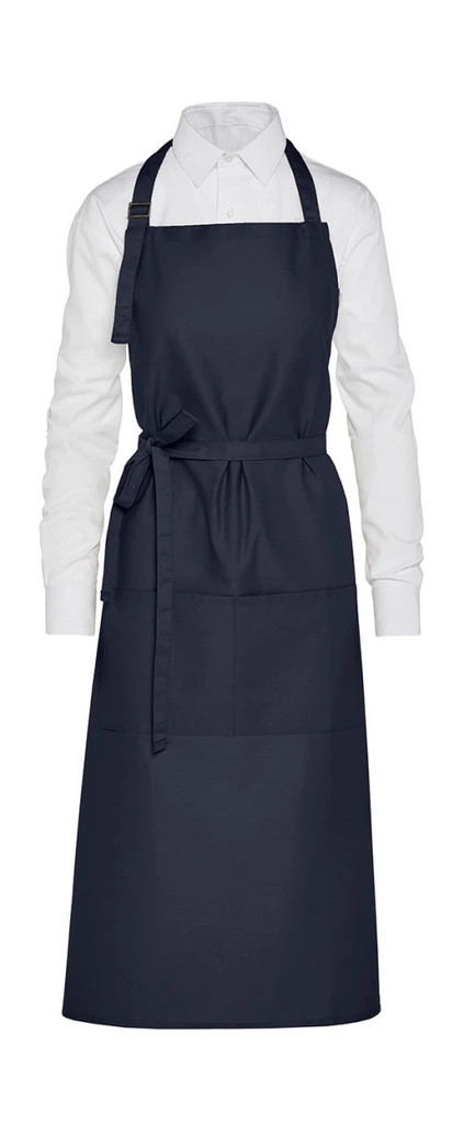Looking for a smart and more SUSTAINABLE bib apron ? You found it! Available in 6 classic colours and featuring a practical divided patch pocket, it will fit in any professional environment. It is made of 65% RECYCLED pre-consumer polyester and 35% RECYCLED post-consumer cotton (GRS certified), a truly conscious choice. Add a logo, graphic or message and make it yours.