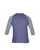 Contrast color set-in collar and 3/4 length raglan sleeve