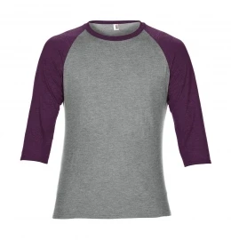 Contrast color set-in collar and 3/4 length raglan sleeve