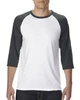 Contrast color set-in collar and 3/4 length raglan sleeve