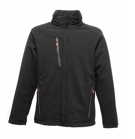 Composition: 96% polyester / 4% elastane; Weight: 260 gsm; Stretch warm-backed Softshell outer, waterproof and breathable Isotex 5000 membrane dropliner, polyester lining to hood, wind resistant, taped seams, foldaway hood, reflective piping trim at pockets, 2 lower and 1 chest water repellent zipped pockets, adjustable cuffs, adjustable shockcord hem, concealed zip entrance in lining for embroidery access