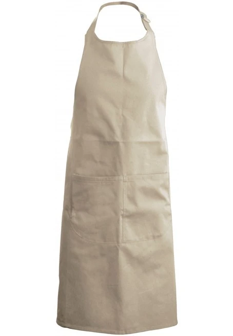 65% polyester / 35% cotton. Industrial laundry 85°C. Domestic wash 60°C. Self fabric neck tie with adjustable buckle. Large double pocket : Length 20 cm - Width 31.5 cm. Apron : Length 90 cm - Width 76 cm.