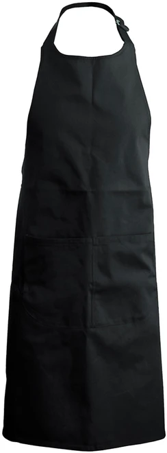 65% polyester / 35% cotton. Industrial laundry 85°C. Domestic wash 60°C. Self fabric neck tie with adjustable buckle. Large double pocket : Length 20 cm - Width 31.5 cm. Apron : Length 90 cm - Width 76 cm.