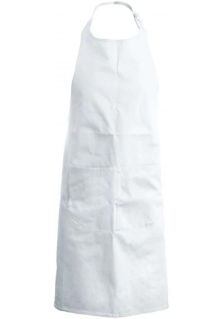 65% polyester / 35% cotton. Industrial laundry 85°C. Domestic wash 60°C. Self fabric neck tie with adjustable buckle. Large double pocket : Length 20 cm - Width 31.5 cm. Apron : Length 90 cm - Width 76 cm.