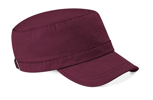 Pre-curved peak, self fabric strap with silver effect, buckle and grommet