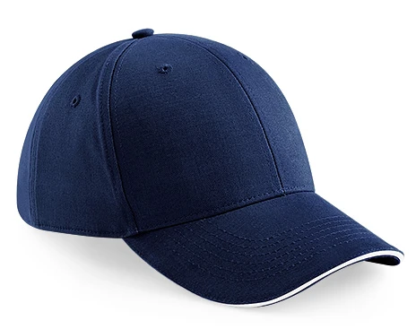 TearAway label for ease of rebranding, 6 panel design, mid profile, pre-curved peak, contrasting colour sandwich peak, structured front panels,