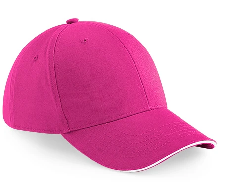 TearAway label for ease of rebranding, 6 panel design, mid profile, pre-curved peak, contrasting colour sandwich peak, structured front panels,