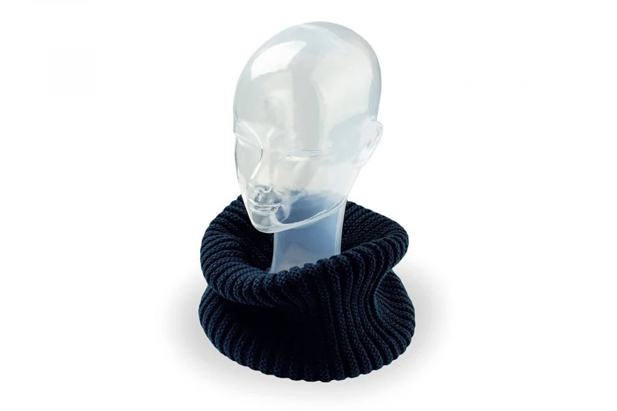 The knitted neckwarmer DAPPER in acrylic and ribbed yarn perfectly suits any outdoor activity.