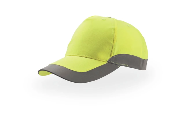 Peak with contrast colour binding. Closure: reflective material band and velcro strap.