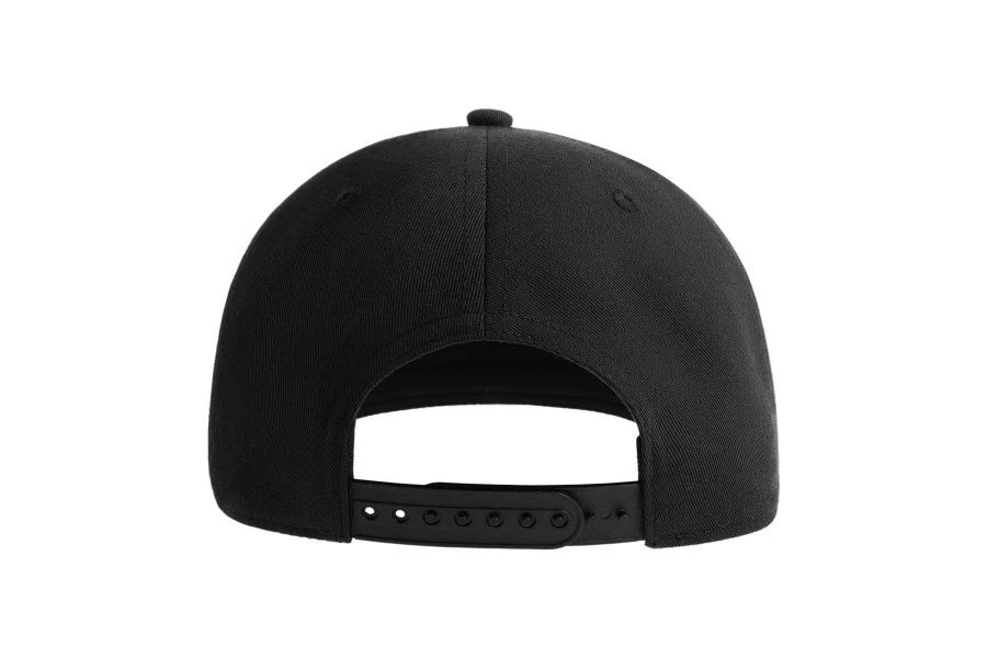 Structured six panel cap with full prostitching and snapback pvc closure. Made of recycled polyester. Old school look and flat visor shape.