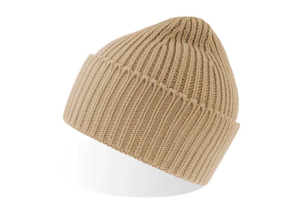 Chunky rib-knitted beanie in soft, warm Polylana® yarn. Single-layer knitting with wide folded cuff and fully fashioned top. Lot of space for broideries on the front.