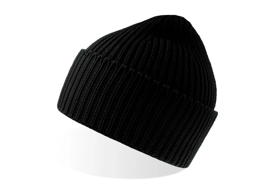 Chunky rib-knitted beanie in soft, warm Polylana® yarn. Single-layer knitting with wide folded cuff and fully fashioned top. Lot of space for broideries on the front.