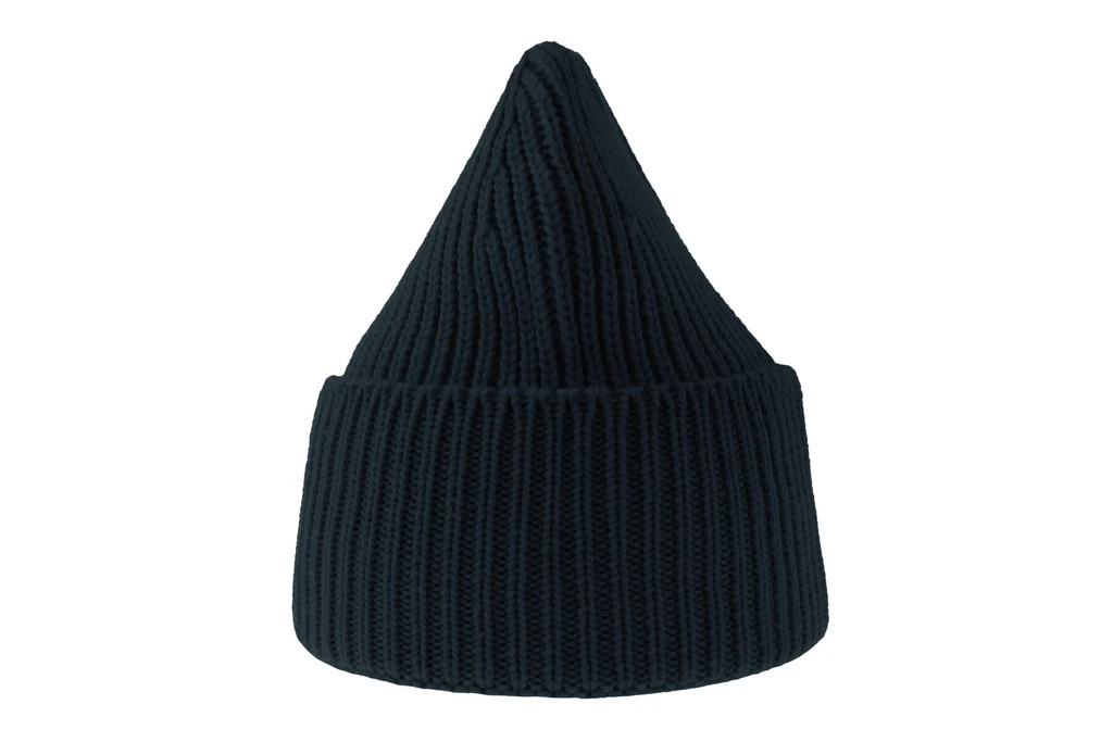 Chunky rib-knitted beanie in soft, warm Polylana® yarn. Single-layer knitting with wide folded cuff and fully fashioned top. Lot of space for broideries on the front.