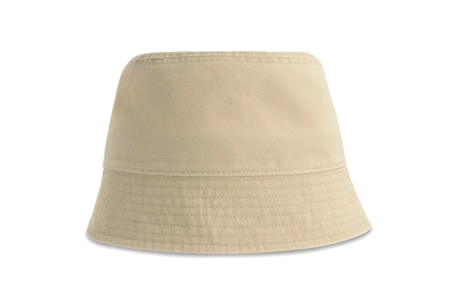 Stylish and young bucket hat made of 60% recycled cotton and 40% virgin cotton twill. Short and steep brim that gives good, all-round protection, and can also be folded so the hat fits in a pocket when it is not in use. Two eyelets on the back for more ventilation.