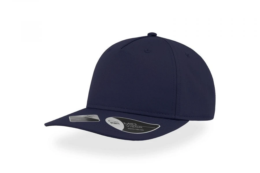 Structured 5-panel hat made of recycled polyester with UV protection and water-repellent finish. Medium peak, dry sweatband and rubber Velcro closure. Suitable for sunny and rainy weather.