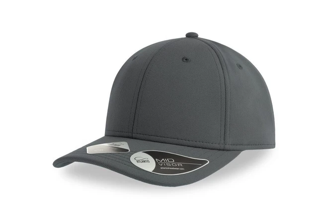 Structured six panel cap made of dope dyed polyester, a certified recycled fabric dyed by hot transfer without immersion in water. Full prostitching, mid visor and 6 eylets. High quality hook&loop closure.