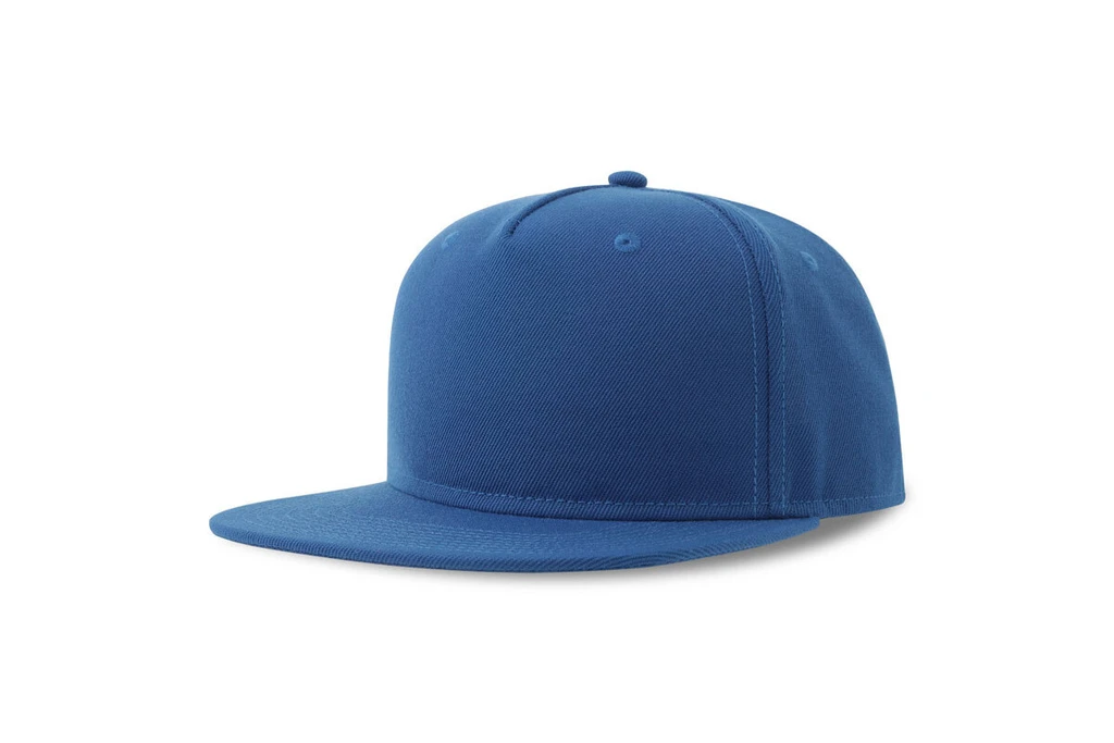 The 5-panel version of the Snap in recycled polyester twill has a flat peak and a recycled snapback closure, typical of streetwear culture.