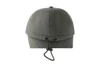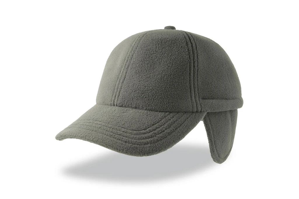 Outdoor winter hat with ear flaps made of recycled polar fleece. Unstructured front panels and curved visor. Adjustable closure with elastic cords and stopper.