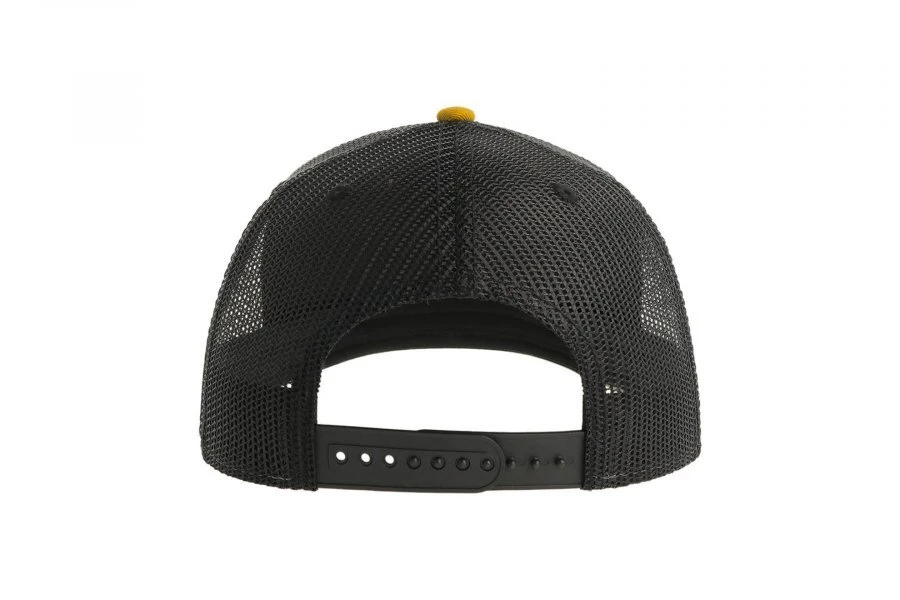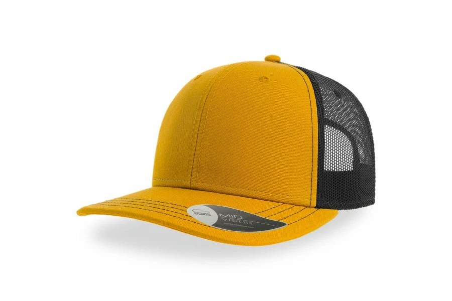 Colorful trucker style with 6-panel structure. Made from a blend of recycled and organic cotton, it has a mid-rise peak and a recycled snapback closure. A breathable recycled polyester mesh fabric completes the garment.