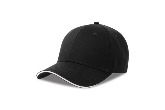 This cap features a sporty design, crafted from lightweight organic and recycled cotton twill. The contrasting sandwich visor adds a pop of style, and the adjustable metal closure, along with the curved ReTraze® recycled visor, makes it an ideal accessory for sports events.