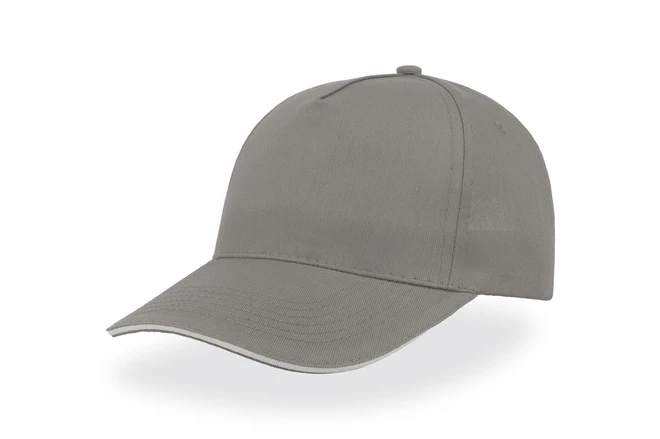 5-panel cap made of 100% lightweight cotton with a contrasting sandwich on the peak, suitable for all events and the promotional world. Velcro closure at the back.