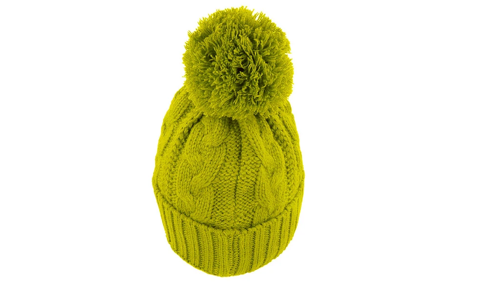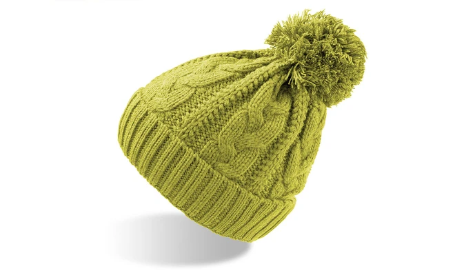 Warm beanie with cable knit pattern, made with thick yarn and fleece lining,enriched by a big pompon, ideal for trendy urban style.