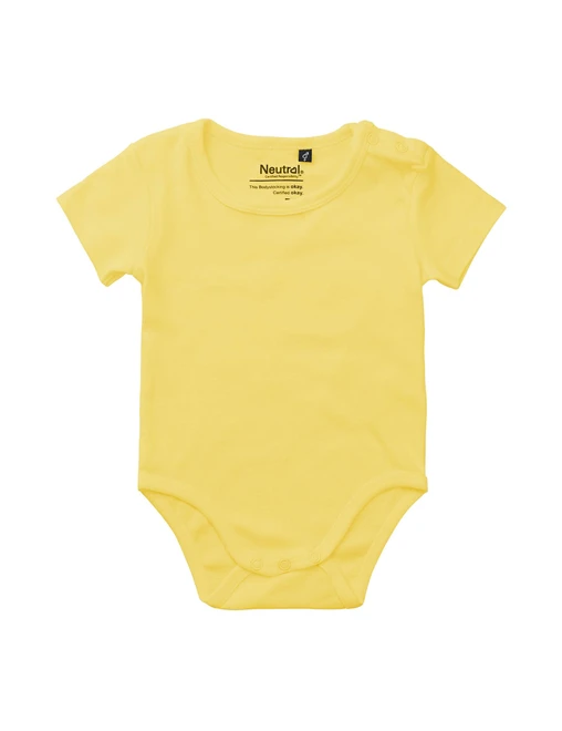 Material: 100% Organic Fairtrade Cotton, 1x1 Rib Knit; Weight: 22gsm; Stretchable rib knit, Short sleeves. Push buttons at shoulder & bottom. Rib knitted edgebands at neck & leg openings; Certificates: OEKO-TEX® STANDARD 100, 100% CERTIFIED ORGANIC COTTON, FAIR WEAR, EU ECOLABEL, SA8000, NEUTRAL® RESPONSIBILITY