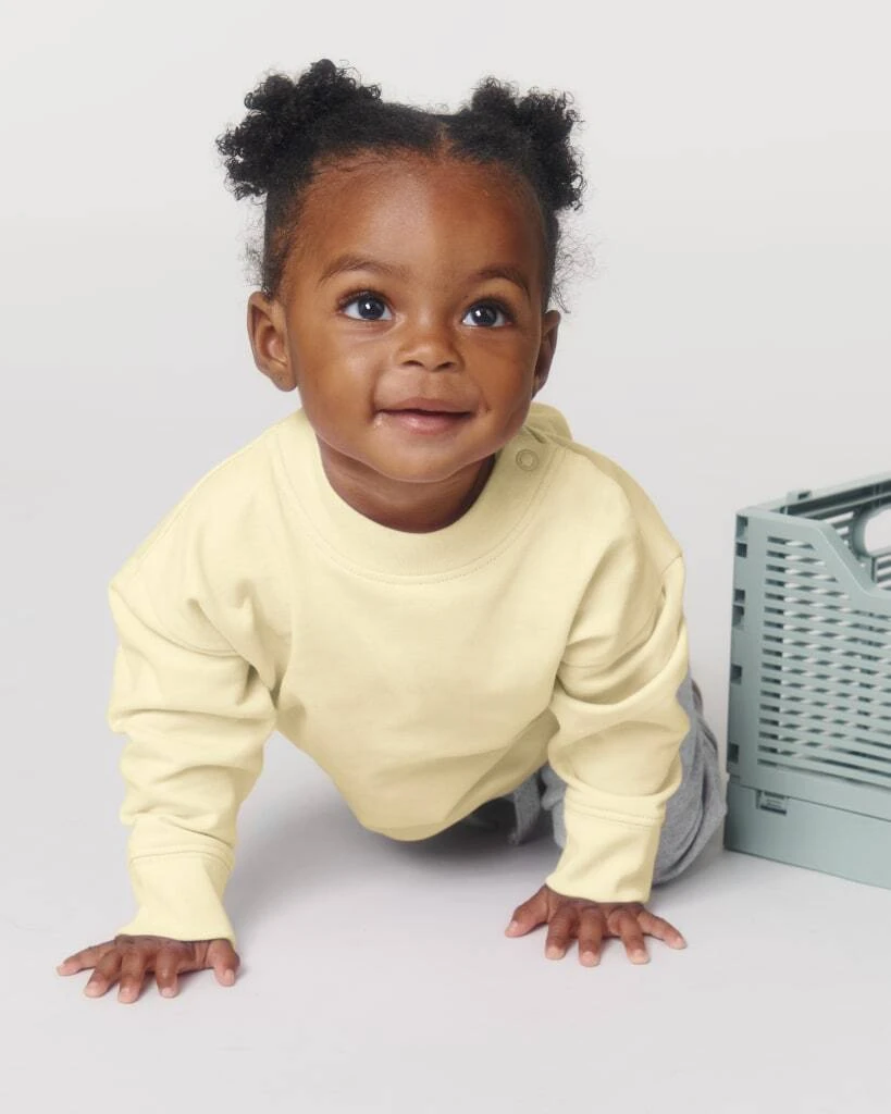 Material: 85% Organic ring-spun combed cotton , 15% Recycled polyester; Set-in sleeve, 1x1 rib at neck collar, sleeve hem and bottom hem, shoulder placket with 1 snap in matching body colour and 1 hidden snap for easy dressing, inside back neck tape in single jersey, self fabric half moon at back neck, single needle topstitch at neck collar, sleeve hem and bottom hem with twin needle topstitch; Certificates: GOTS - Global organic textile standard, Fair wear, STANDARD 100 by OEKO-TEX®, Peta - Approved VEGAN