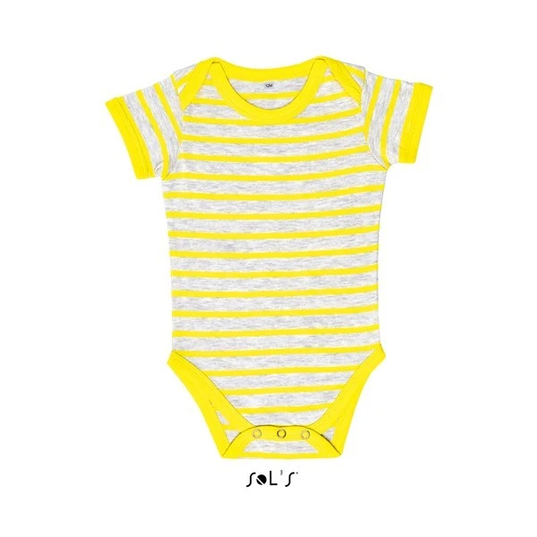 QUALITY: 1X1 RIB 180, 100% combed Ringspun cotton; TRENDY, Binding at neck, Envelope neck, Contrasting bias, Snap fastening at the crotch; Certificate: STANDARD 100 by OEKO-TEX®