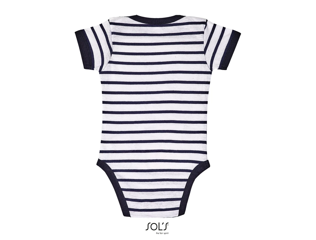 QUALITY: 1X1 RIB 180, 100% combed Ringspun cotton; TRENDY, Binding at neck, Envelope neck, Contrasting bias, Snap fastening at the crotch; Certificate: STANDARD 100 by OEKO-TEX®