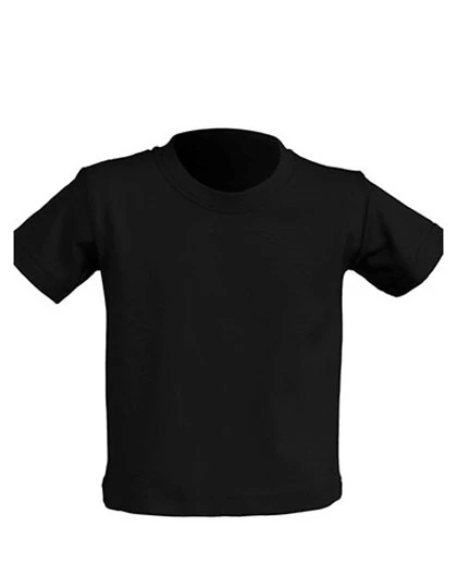 Babies short sleeve T-shirt. Lycra rib neck. Side seams on body. Shoulder to shoulder tape.