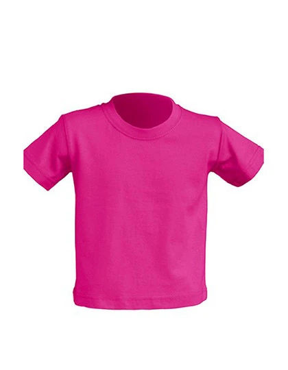Babies short sleeve T-shirt. Lycra rib neck. Side seams on body. Shoulder to shoulder tape.