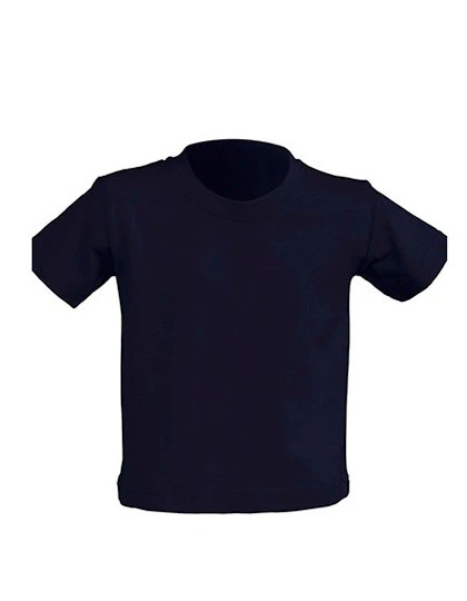 Babies short sleeve T-shirt. Lycra rib neck. Side seams on body. Shoulder to shoulder tape.