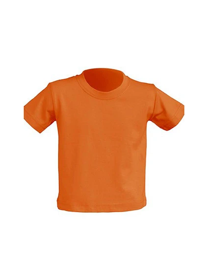Babies short sleeve T-shirt. Lycra rib neck. Side seams on body. Shoulder to shoulder tape.