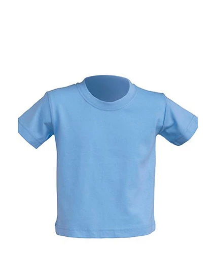 Babies short sleeve T-shirt. Lycra rib neck. Side seams on body. Shoulder to shoulder tape.