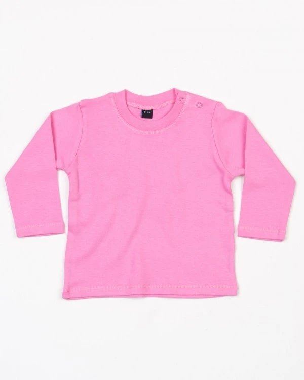 200 gsm • 100 % combed cotton • set-in long sleeves • elastic rib trim to neck • nickel-free press stud opening on left shoulder • decorative stitching to neckline • sleeves and bottom hem • side seams.