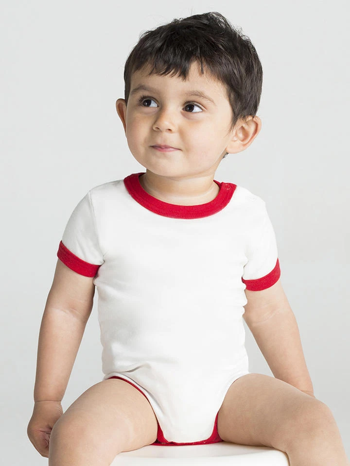 200 gsm • 100 % cotton (Light Grey Marl: 97.5 % cotton, 2.5 % polyester) • interlock • contrast-colour rib-knit neck • cuffs and leg end • press stud crotch and shoulder openings • tone-in-tone press studs.