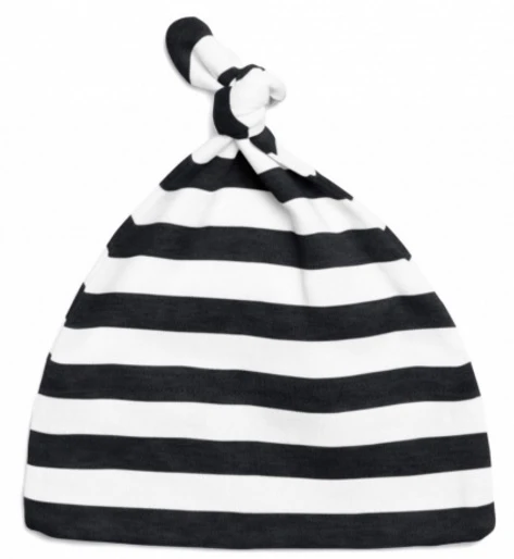 200 gsm • 100 % combed cotton • interlock baby hat • broad turnover with double seam • finished with a decorative knot at top of hat